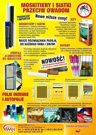 Prowadzimy sprzedaż hurtową i detaliczną, na terenie całego kraju: profili, siatek, elementów do produkcji moskitiery, folii okiennych: bezpieczne, antywłamaniowe, refleksyjne, matowe oraz auto-folie. Narzędzia do montażu folii: wyciskacze teflonowe*gumowe, dociskacze, rakle, skrobaki, noże, ostrza wymienne. W naszej ofercie mamy także maszyny, elektronarzędzia, urządzenia do obróbki drewna i metalu : Jet, Lamello, Invis, Holz Her, Reich, Braun, Wilton.