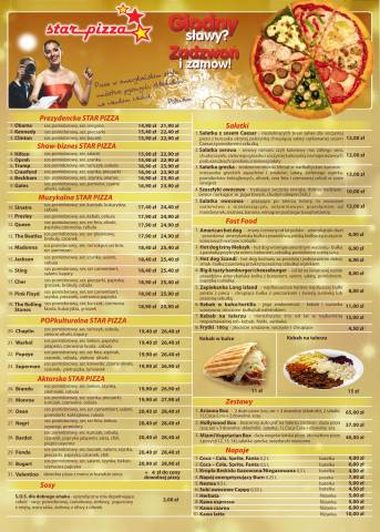 Pizzeria Star Pizza z Ko³obrzegu zaprasza wszystkich smakoszy dobrego jedzenia na pizzê w amerykañskim stylu. Star Pizza, to po³±czenie przepysznych ¶wie¿ych warzyw, aromatu z³oci¶cie zapieczonego, sprê¿ystego sera i przypraw o s³odko – pikantnej nucie.